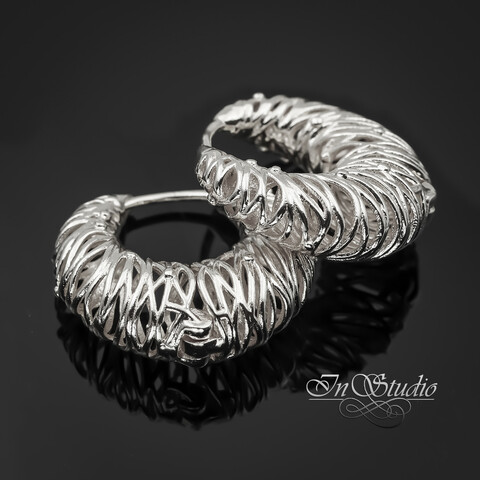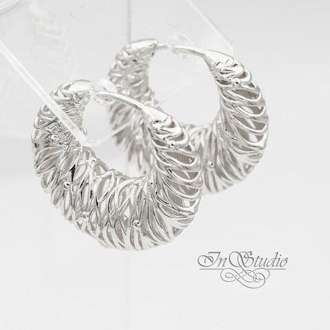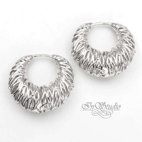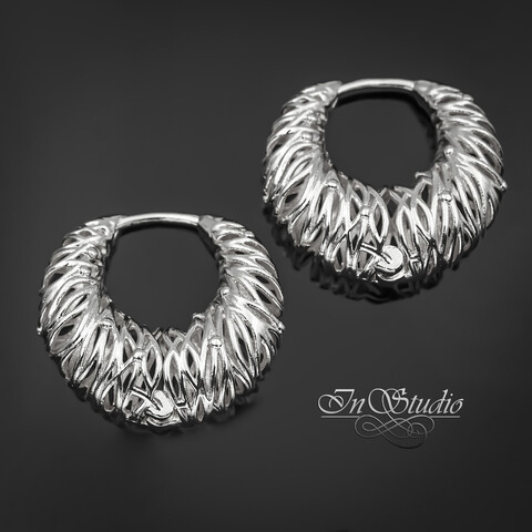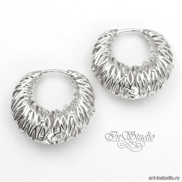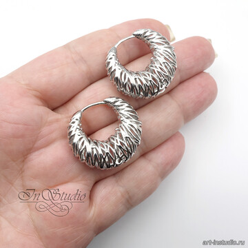Серьги-круассаны с рельефными узорами выглядит очень эффектно.