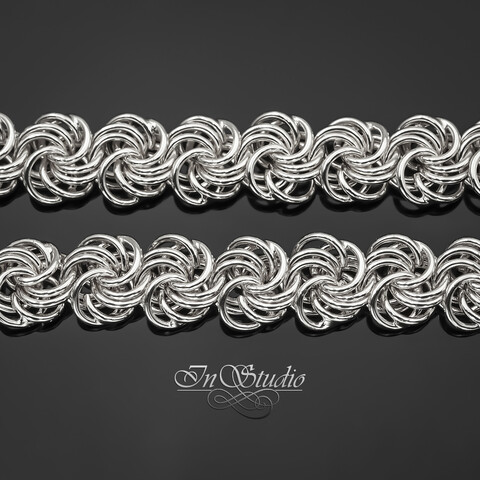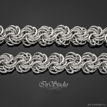 Выполнена в виде плоского жгута из множества переплетающихся колечек.