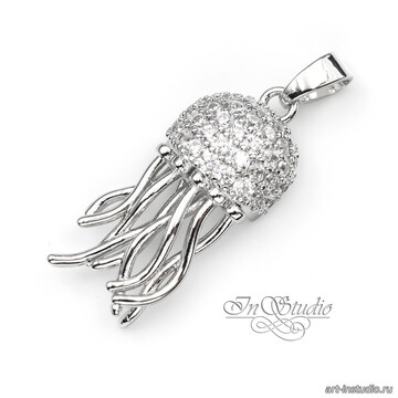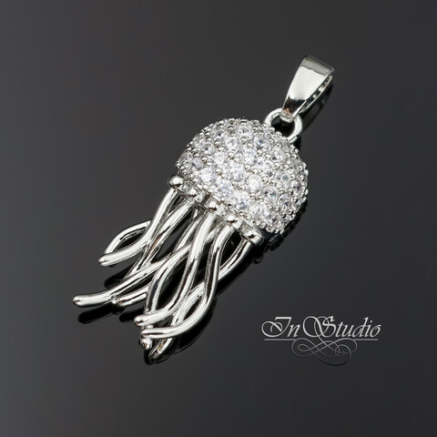 Подвеска кулон Медуза 23 мм родий с фианитами