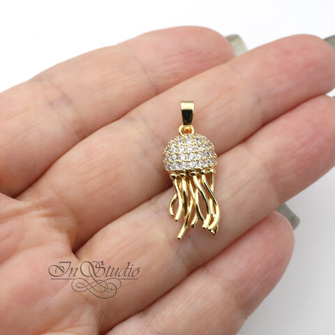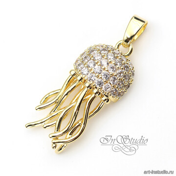Подвеска кулон Медуза 23 мм позолота с фианитами