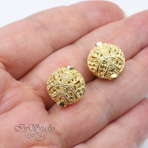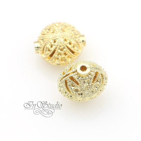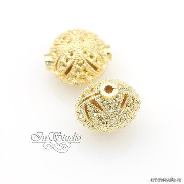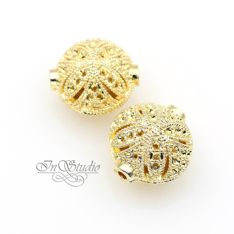 Бусина из металла ажурная 14,5х13 мм позолоченная