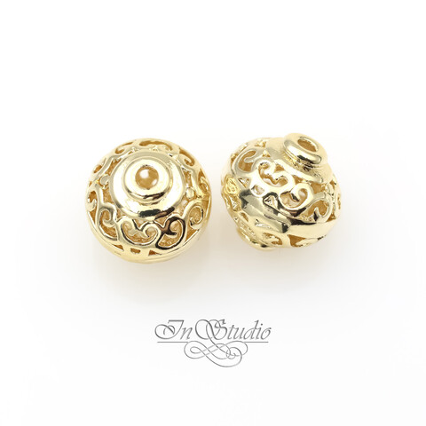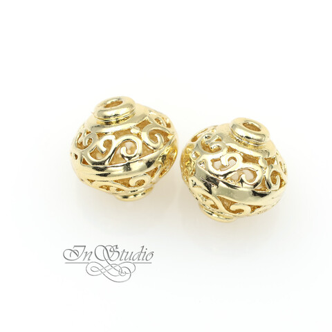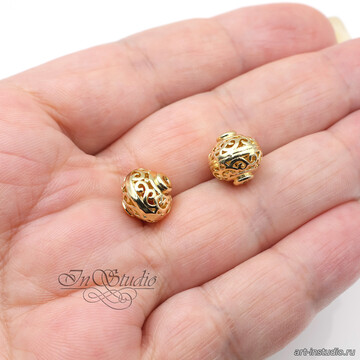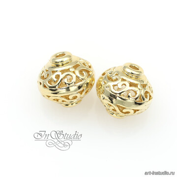 Бусина из металла ажурная с вензелями 10х9,6 мм позолота
