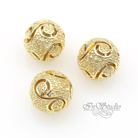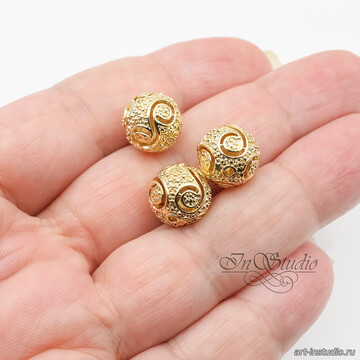 Бусина ажурная шарик из металла 11 мм позолота