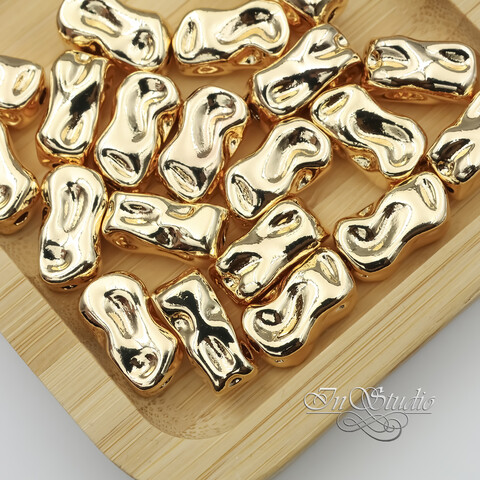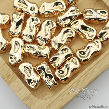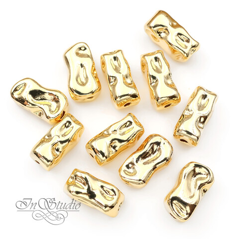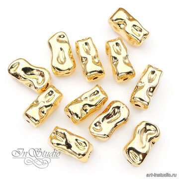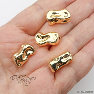 Бусина крупная мятая прямоугольная 18х10,2 мм позолота
