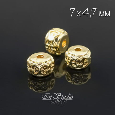 Бусина декоративная рондель 7 мм фактурная позолота