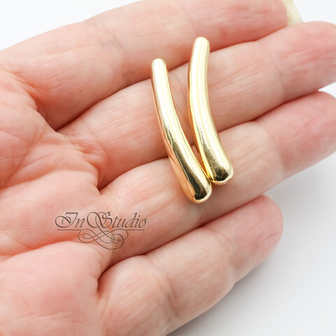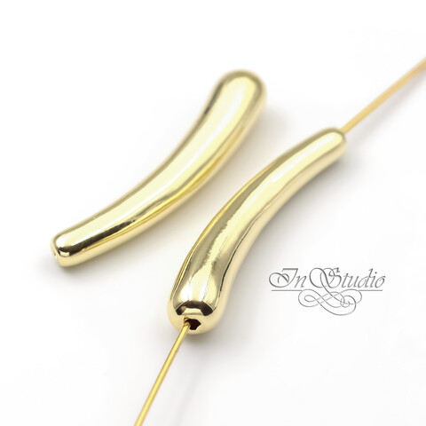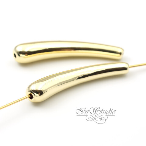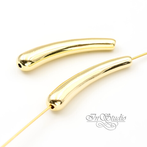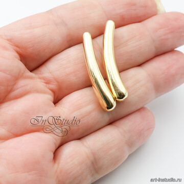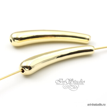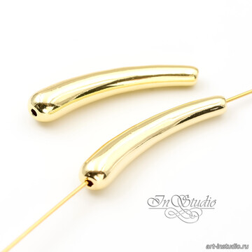 Бусина длинная трубочка капля 33 мм позолота