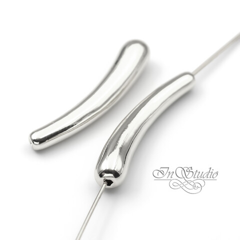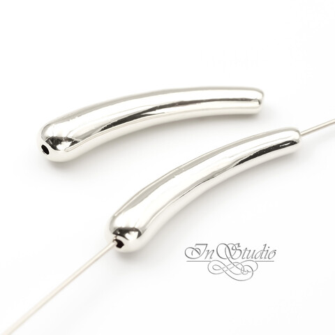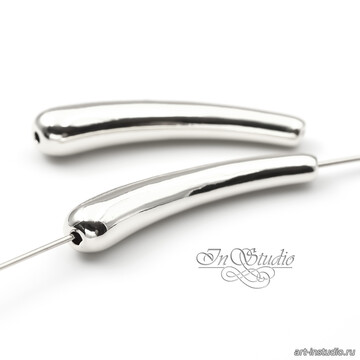 Бусина длинная трубочка капля 33 мм родий