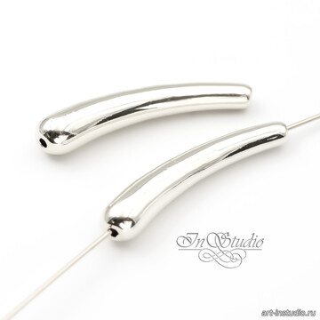 Бусина выполнена в форме тонкой изогнутой капли.