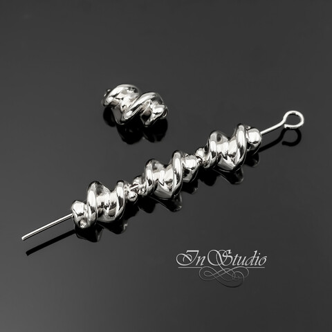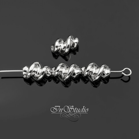 Бусина выполнена в форме изогнутой витой трубочки (спирали).