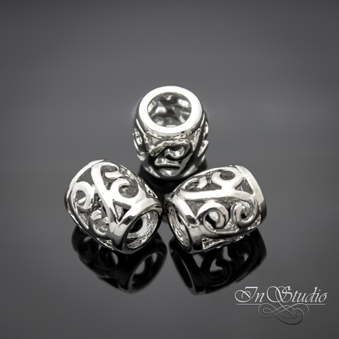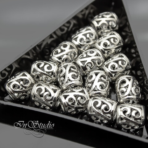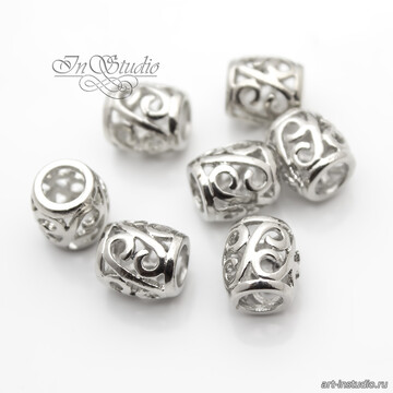 Бусина из металла ажурный бочонок 10х9 мм родий