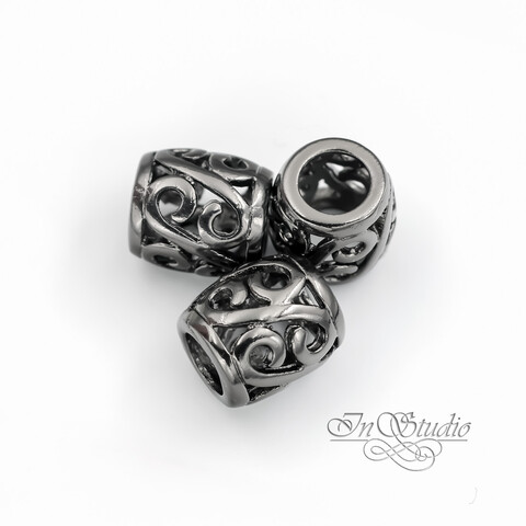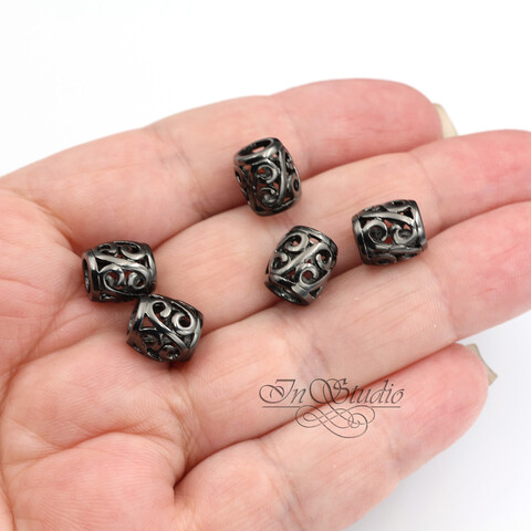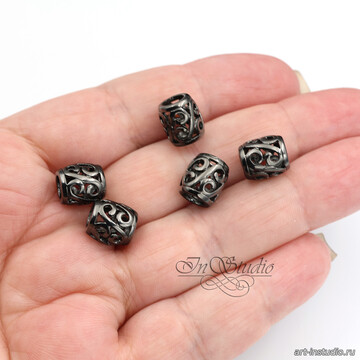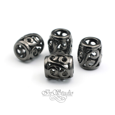 Бусина из черного металла ажурный бочонок 10х9 мм Gunmetal