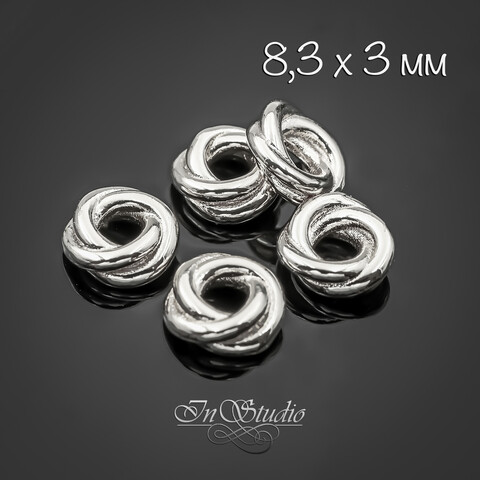 Бусина металлическая рондель разделитель 8,3х3 мм родиевое покрытие