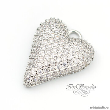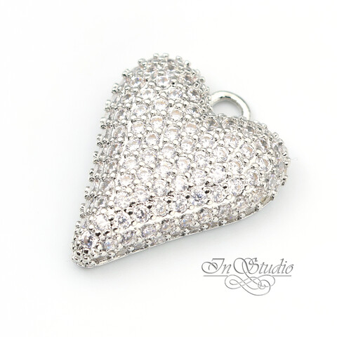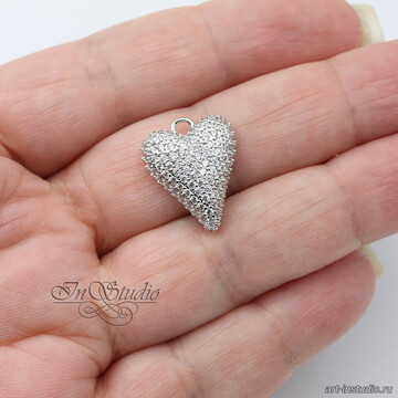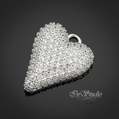 Подвеска кулон Сердце с фианитовыми вставками 19 мм родий