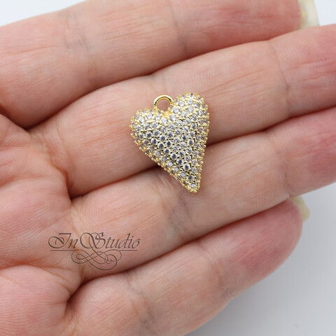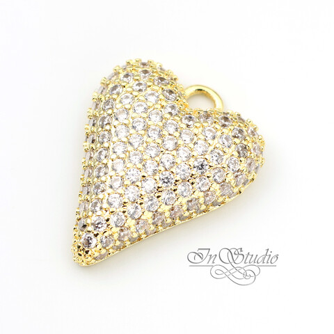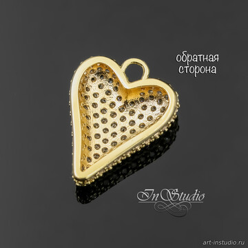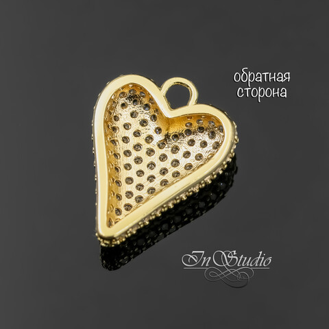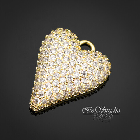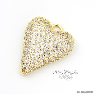 Подвеска кулон Сердце с фианитовыми вставками 19 мм позолота