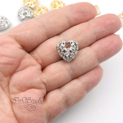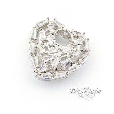 Подвеска "бублик" двустороннее Сердце с фианитами 15 мм родиевое покрытие