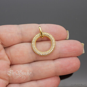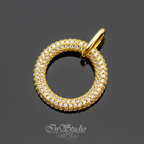 Подвеска металлическая кулон Круг с фианитами 21 мм позолота