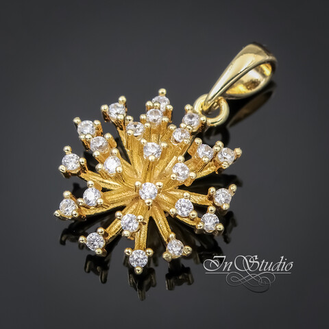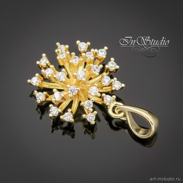 Подвеска Одуванчик с фианитами 24х16 мм позолоченное покрытие