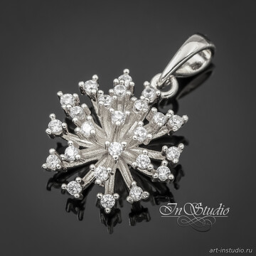 Подвеска Одуванчик с фианитами 24х16 мм родиевое покрытие