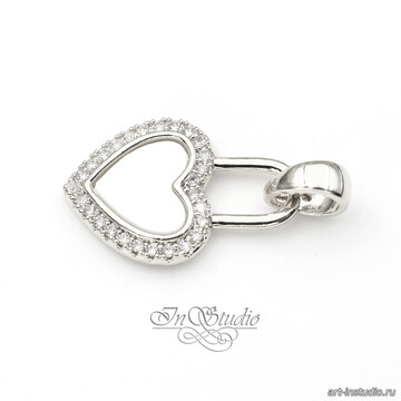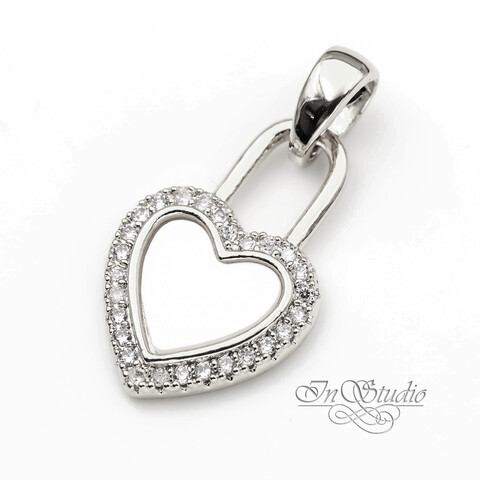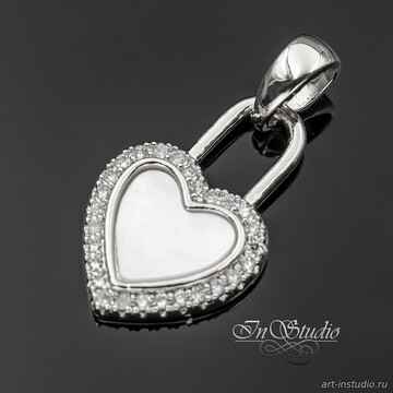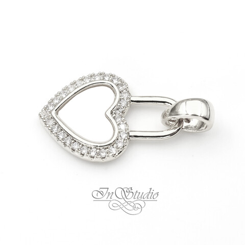 Подвеска кулон Сердце с перламутром и фианитами 18 мм родий