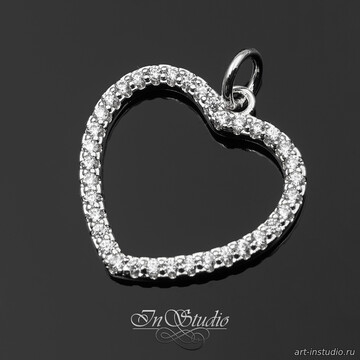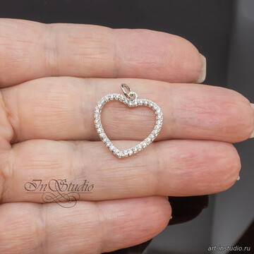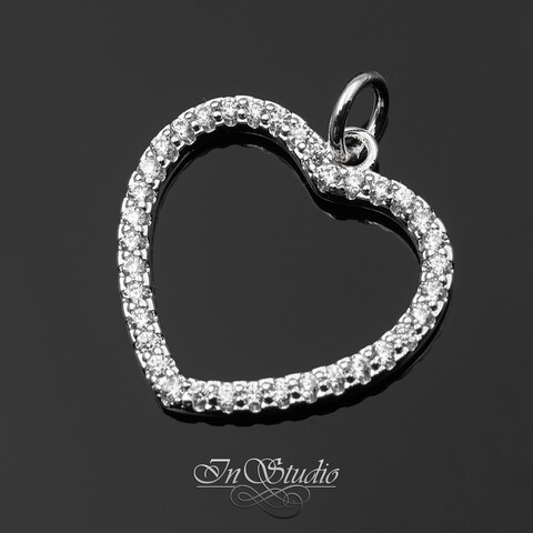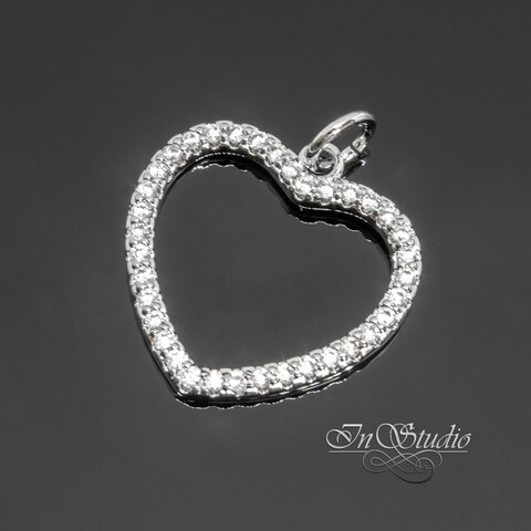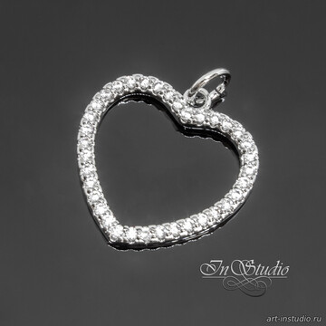 Кулон для украшений Сердце с фианитами 18 мм родий