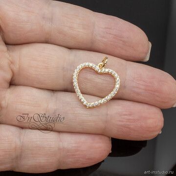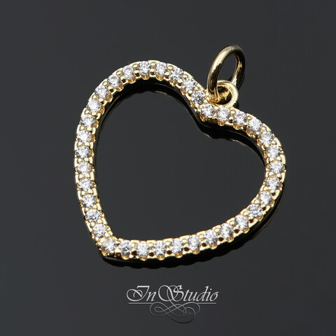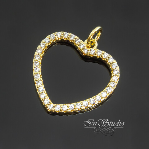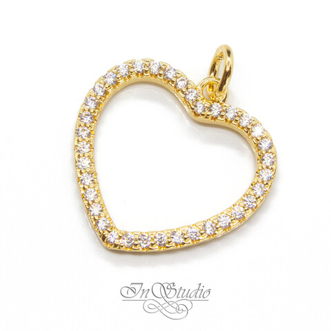 Кулон для украшений Сердце с фианитами 18 мм позолота