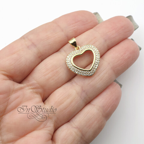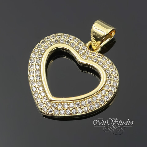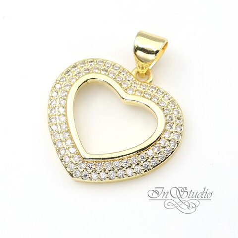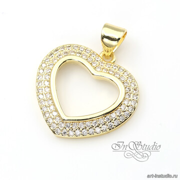 Подвеска для украшений Сердце с фианитами 18 мм позолоченное покрытие
