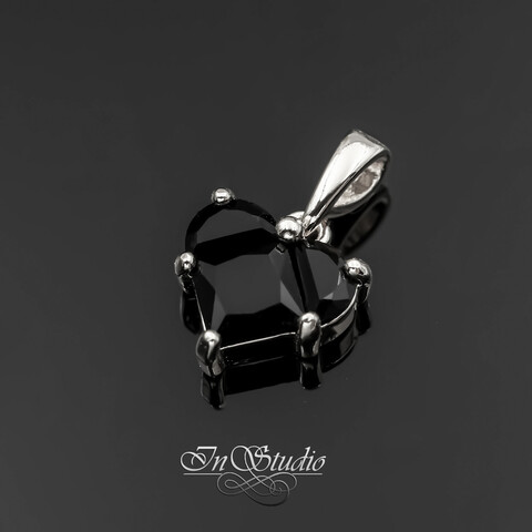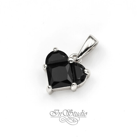 Кулон Сердце с крупным черным фианитом 12 мм родий
