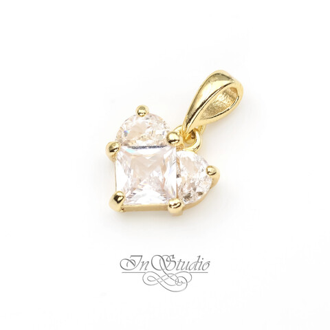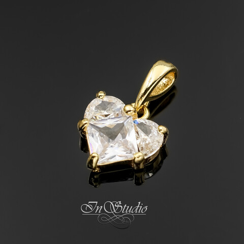 Подвеска Сердце с крупными фианитами 12 мм позолоченная