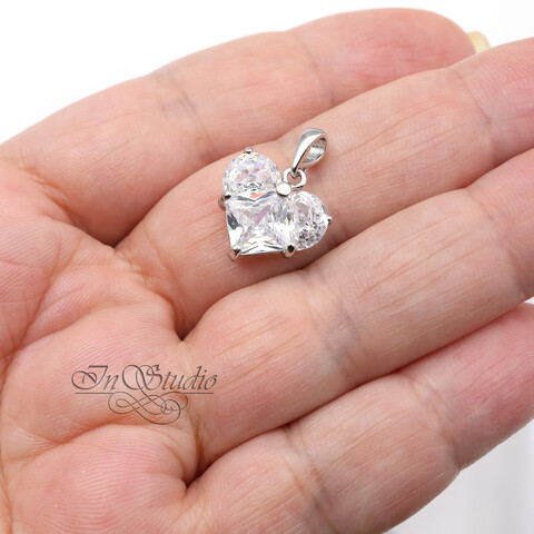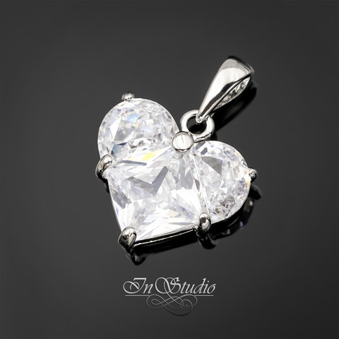 Подвеска Сердце с крупными фианитами 14 мм родий