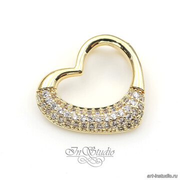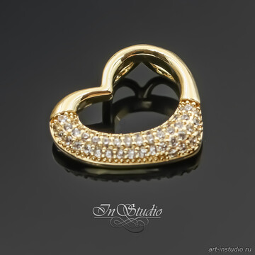 Подвеска кулон Сердце под цепочку 16х14 мм фианиты позолота