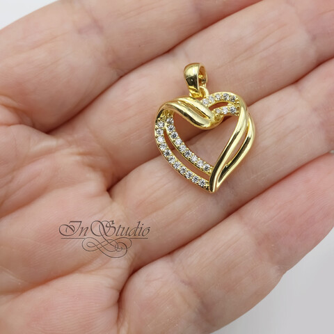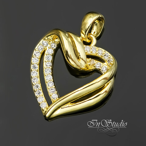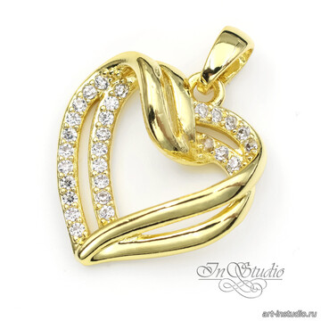 Подвеска кулон Сердце 20х18 мм фианиты позолоченное покрытие