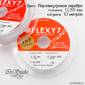 Ювелирный тросик 0,35 мм Перламутровое серебро Flexy 7 жил