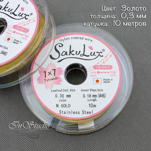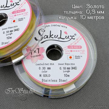Ювелирный тросик 0,3 мм SakuLux золото 7 жил ланка