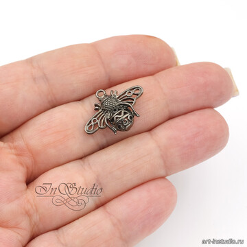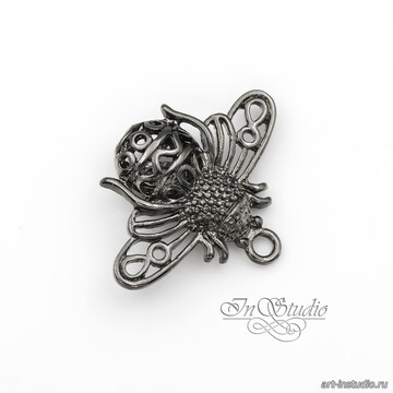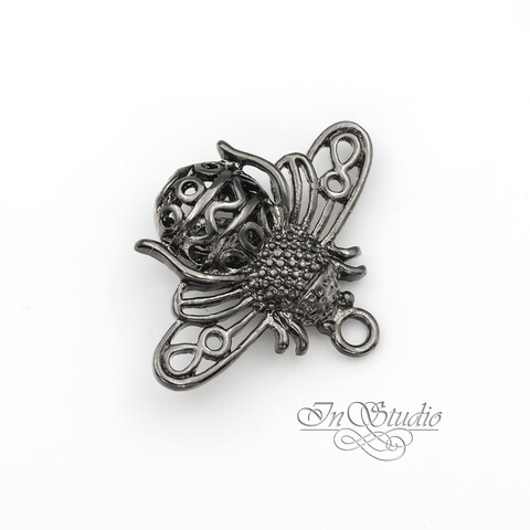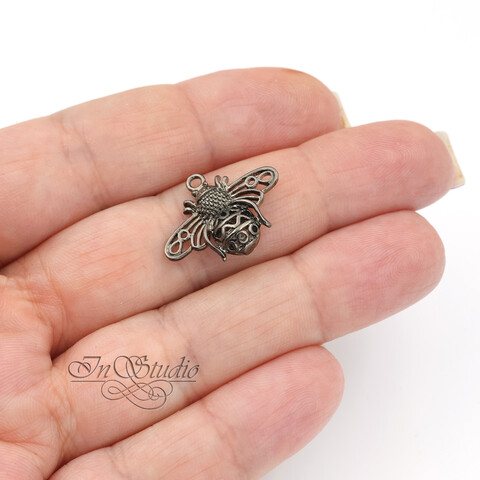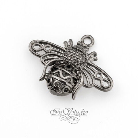 Подвеска черная Пчела 16х21 мм родий Gunmetal