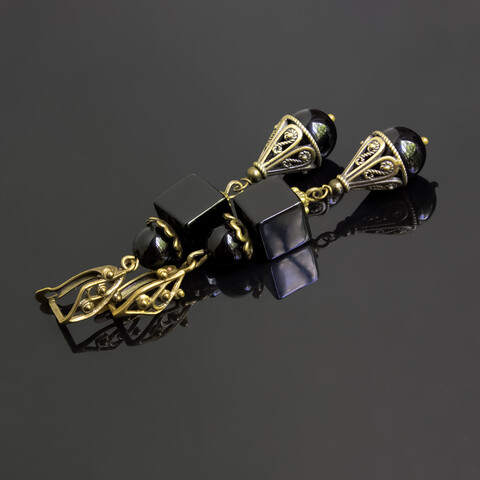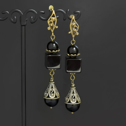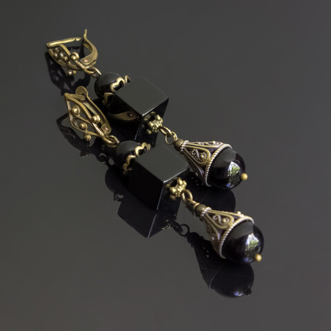 Стильные, строгие и в то же время очень эффектные серьги с бронзовой фурнитурой.