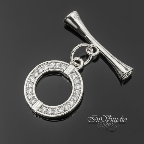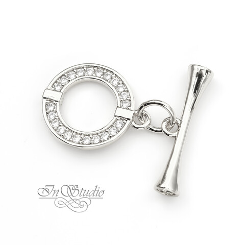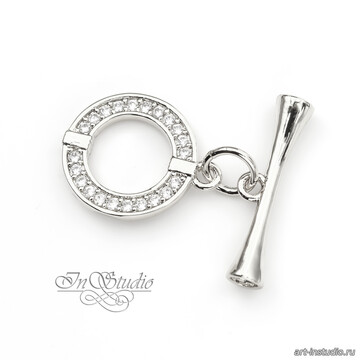 Замок тогл круглый с фианитовыми вставками 12 мм родий