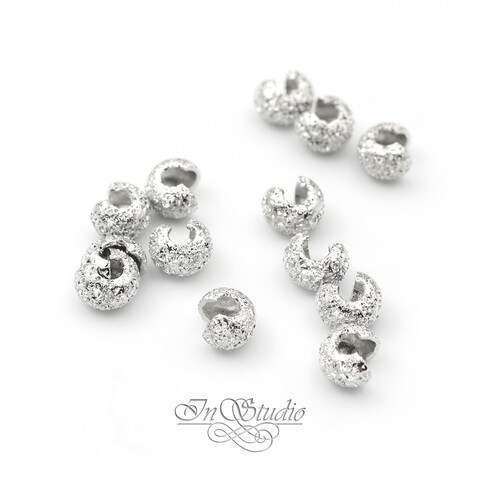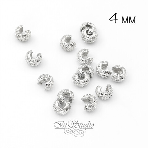 Бусины обжимные фактурные 4 мм родиевое покрытие