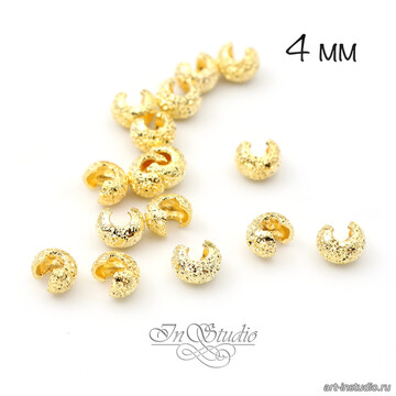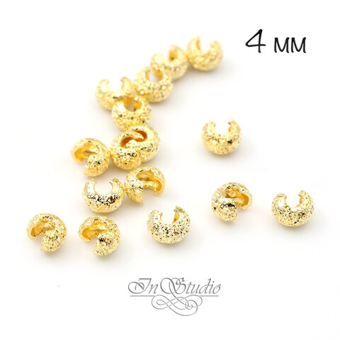 Бусины обжимные фактурные 4 мм позолоченное покрытие