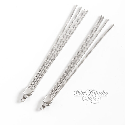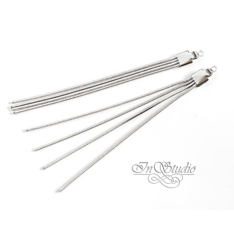 Подвеска кисточка для сережек 65 мм четыре цепочки родий