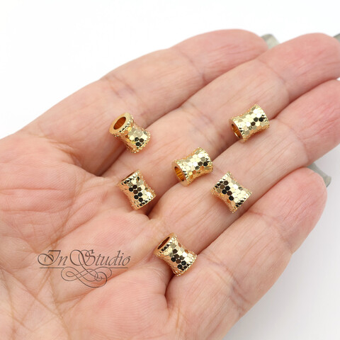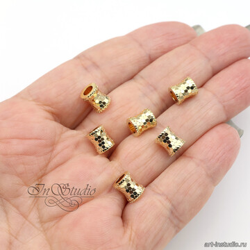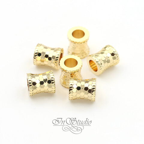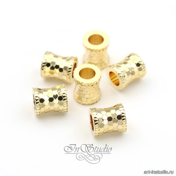 Бусина фактурный цилиндр 7,4х6 мм позолота