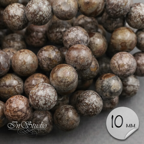 Цветовая гамма минерала - серые пятнышки с преобладанием кофейно-коричневого цвета.