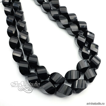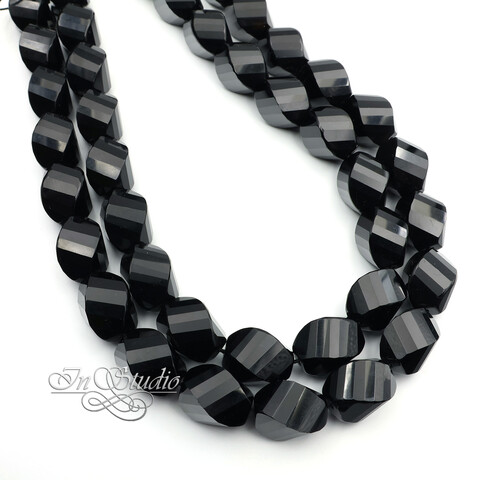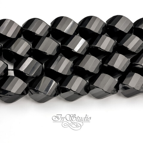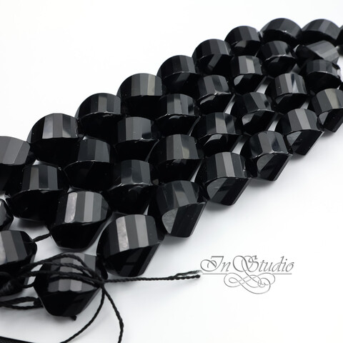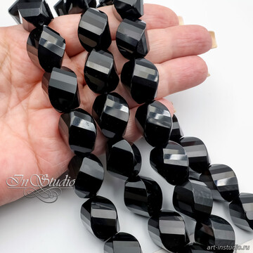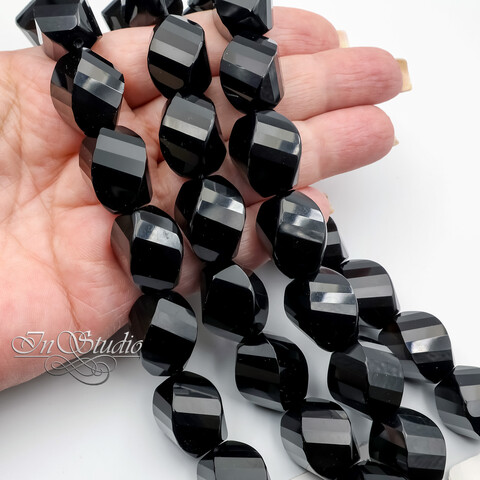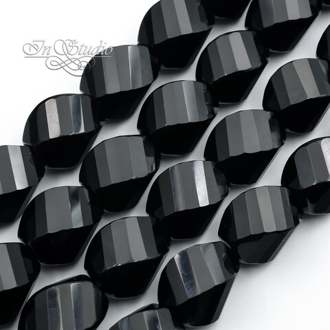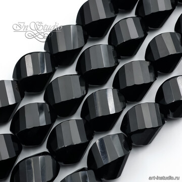 Агат черный огранка 20х15 мм многогранные крупные бусины оливки