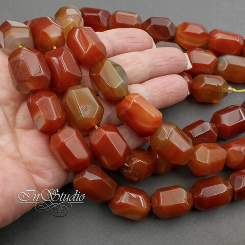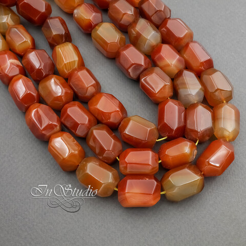 Крупные многогранные бусины из натурального сердолика.