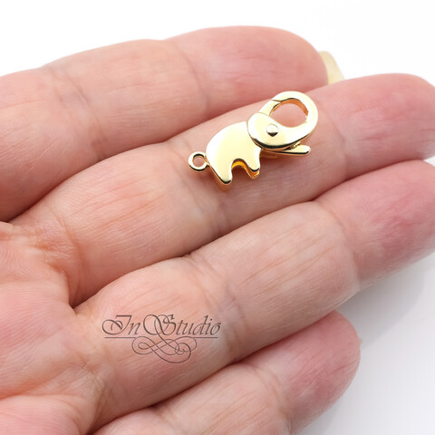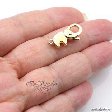Замочек Слоник 20х10 мм карабин лобстер позолота