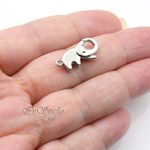 Замочек Слоник 20х10 мм карабин лобстер родий