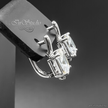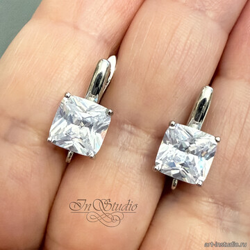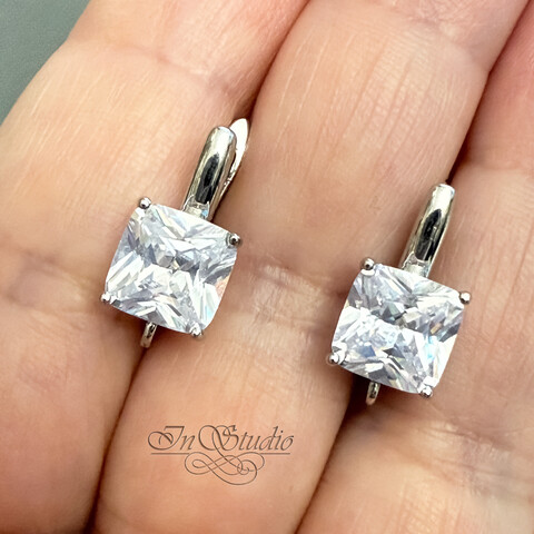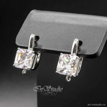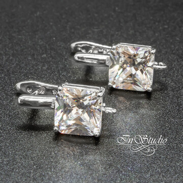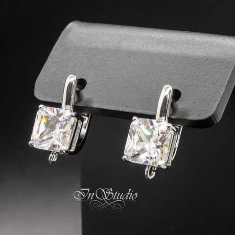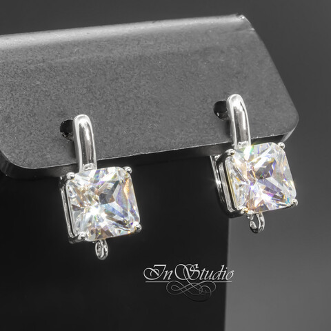 Швензы квадратные Ника с крупным фианитом родий