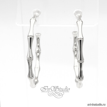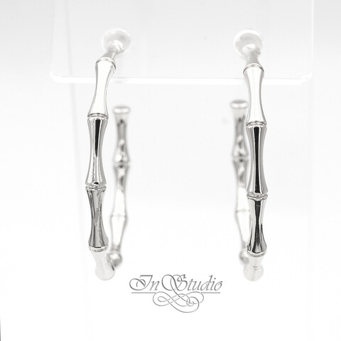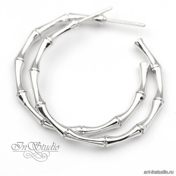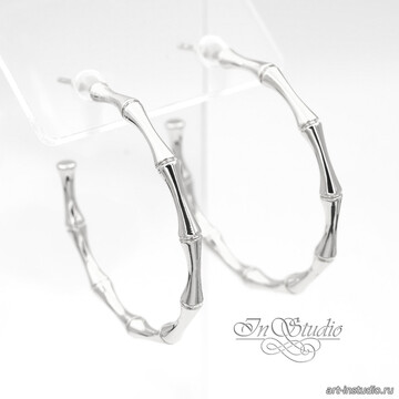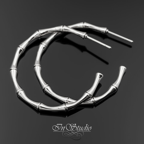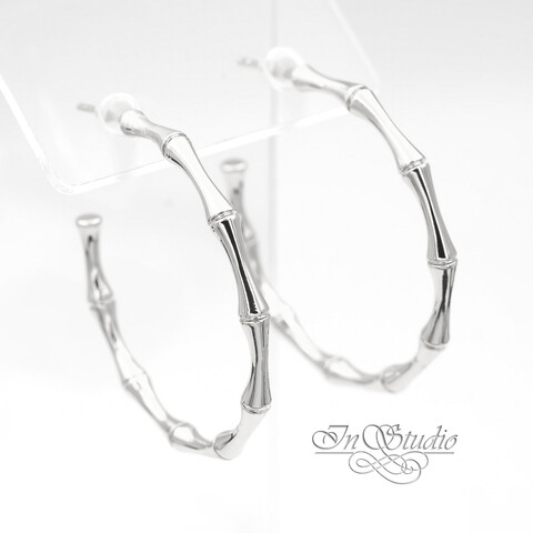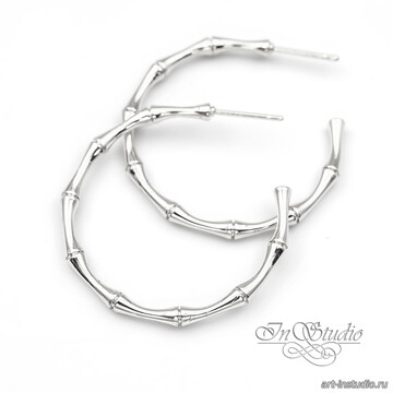 Серьги пусеты крупные кольца БАМБУК 37 мм гвоздики родий
