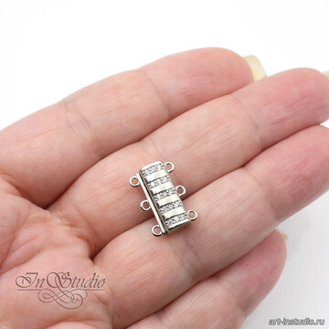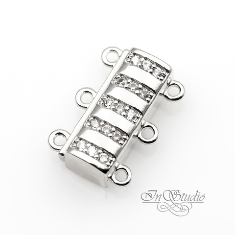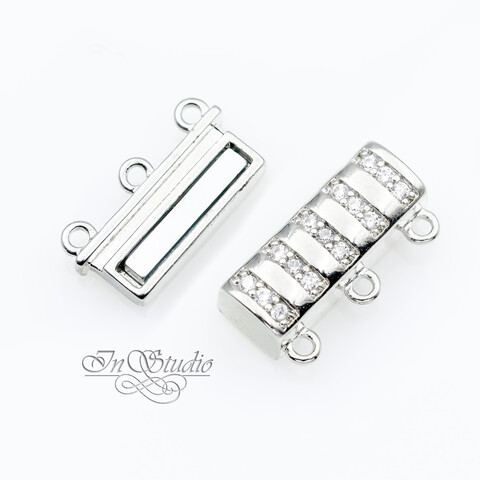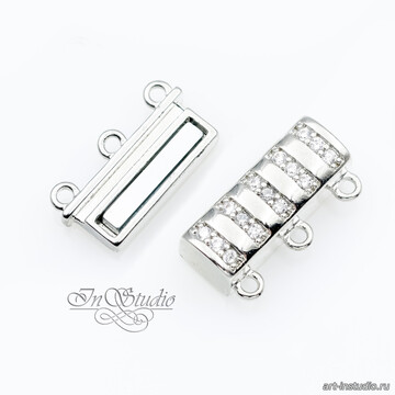 Замок магнитный на ТРИ НИТИ 15 мм родиевое покрытие фианиты