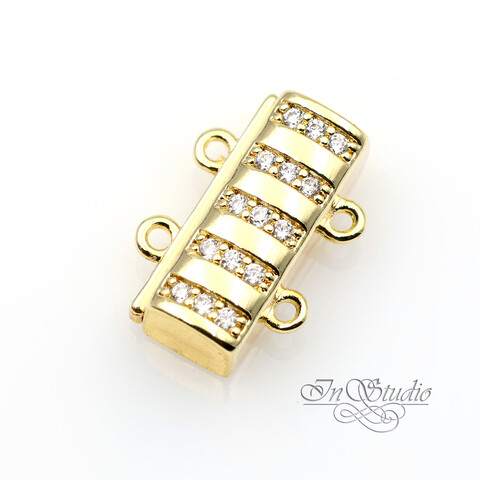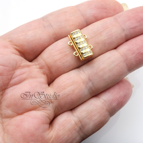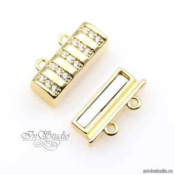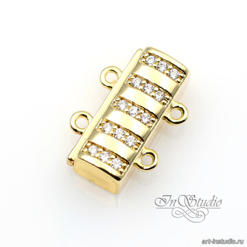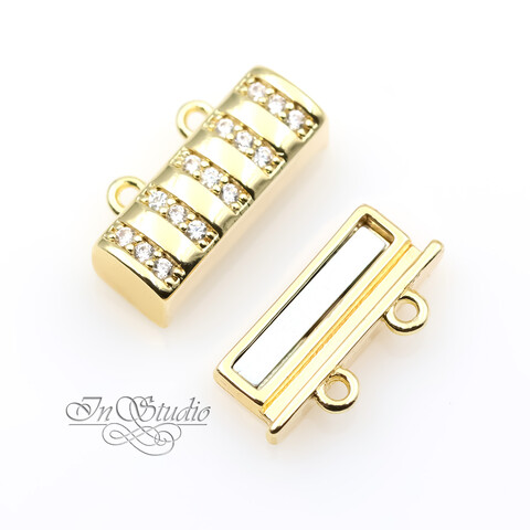 Замок магнитный на две нити 15 мм позолоченное покрытие фианиты