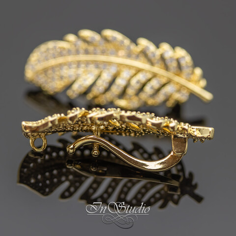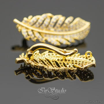 Бейл замок разъемный Перо с фианитами позолота